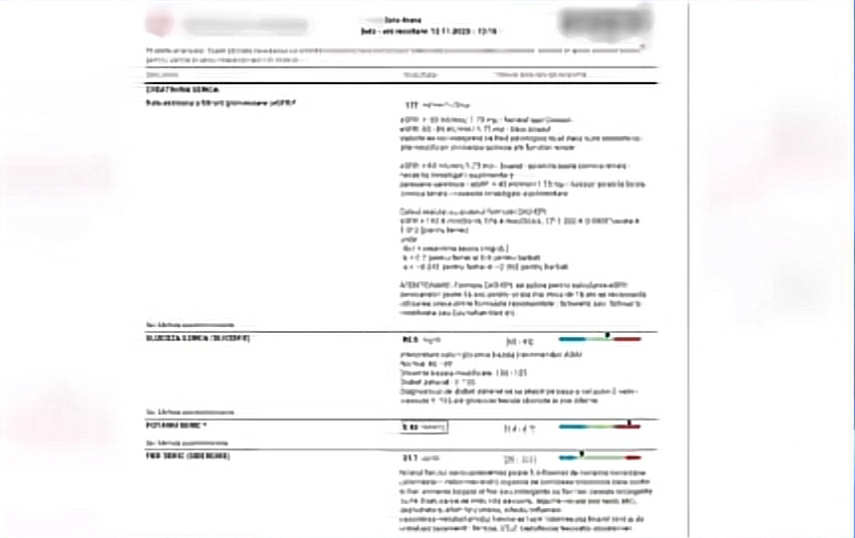 Buletinul de analize al Sarei, intrat în posesia familiei, arată valori alarmante ale unor parametri esențiali. Acest lucru ridică semne de întrebare cu privire la modul în care s-a luat decizia de a i se administra anestezie intravenoasă.
