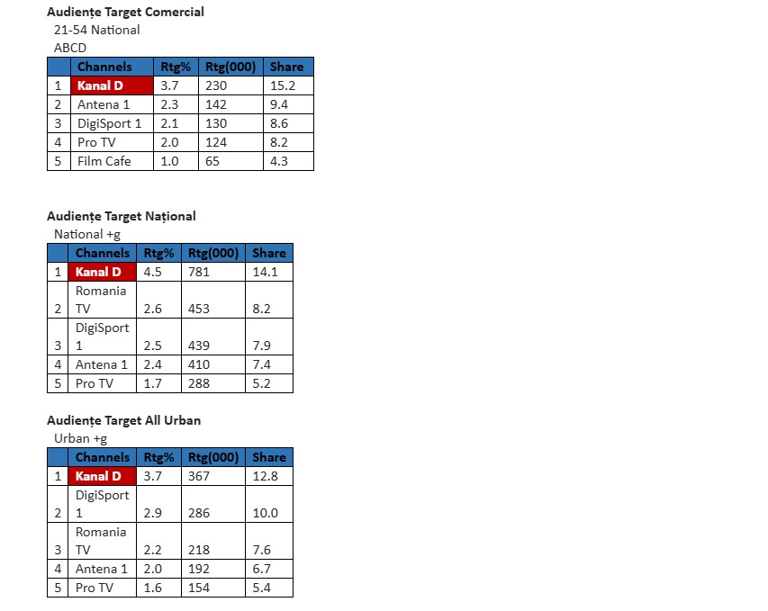 781.000 de telespectatori au urmărit Kanal D în prima parte a emisiunii, minutul de aur înregistrându-se la 17:52, când aproape 1 milion (982.000) de telespectatori urmăreau evenimentele din casa dragostei.