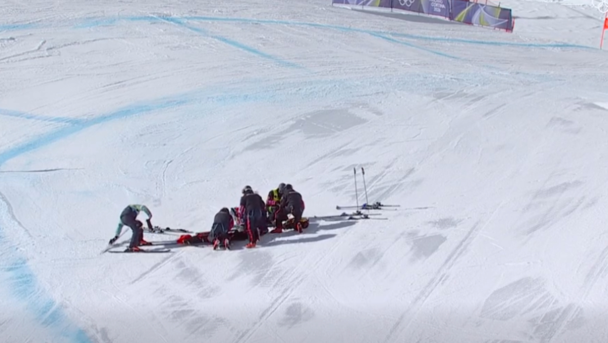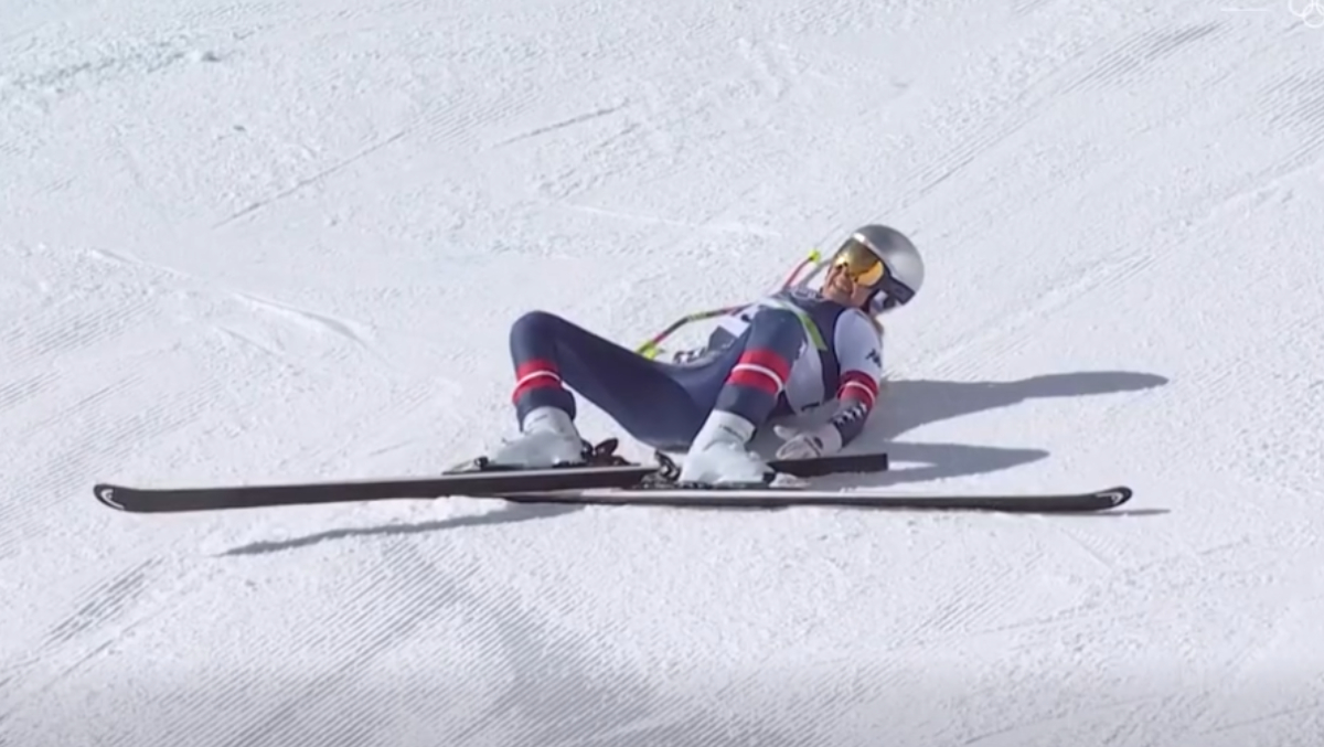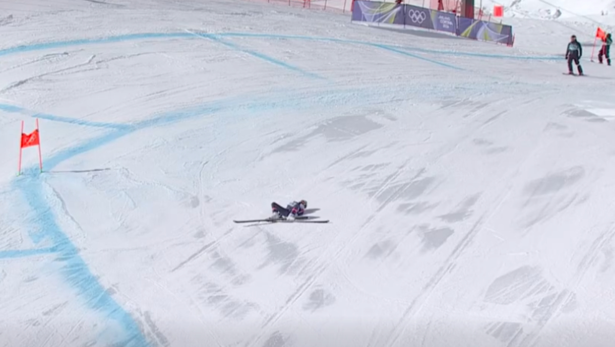 La scurt timp după start, schioarea americană a agățat o poartă într-o săritoare spre dreapta, ceea ce a făcut-o să se dezechilibreze și să sufere o teribilă căzătură pe spate. Minute în șir a rămas nemișcată schioarea, urlând de durere sub privirile spectatorilor.