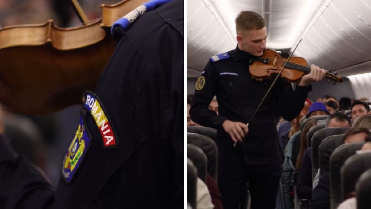 Anunțul despre reprezentația jandarmului a fost făcut de echipajul de cabină, care i-a pregătit astfel pe pasageri pentru surpriza muzicală.