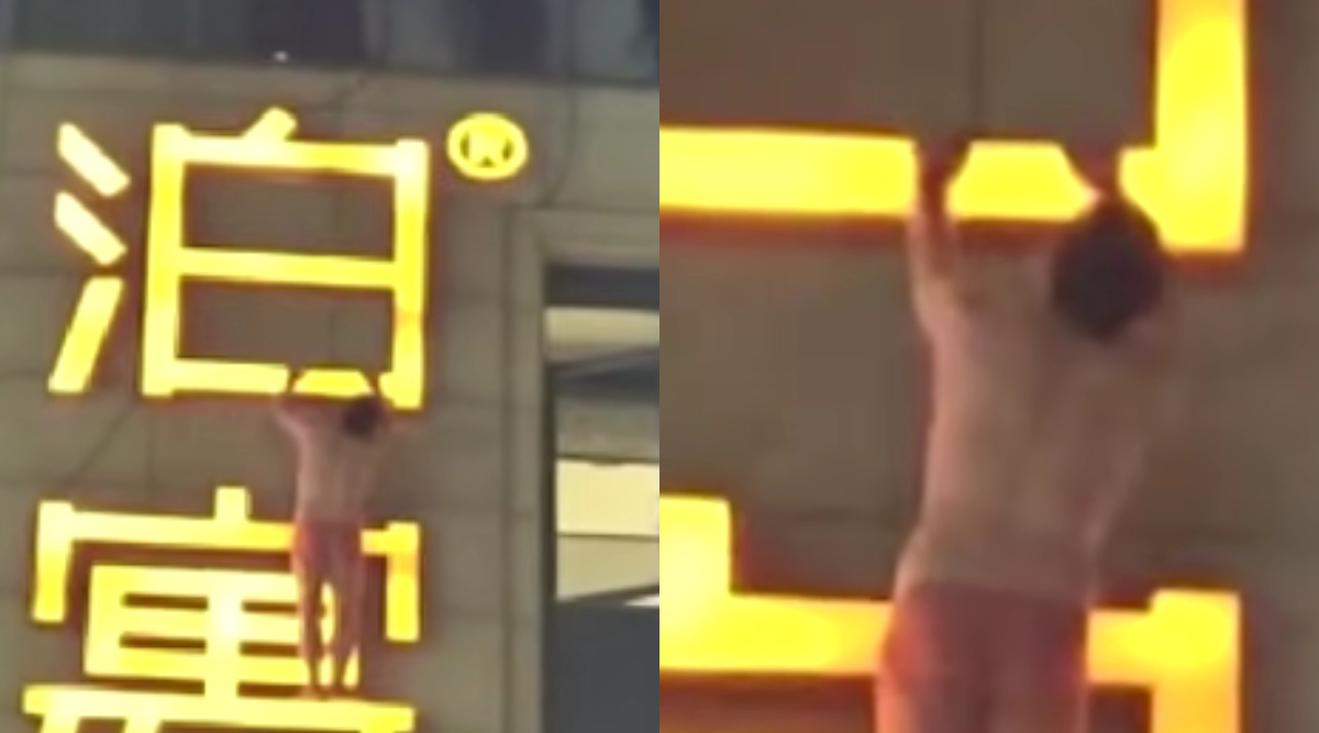Îmbrăcat sumar, el a reușit să ajungă până la sigla hotelului, unde s-a oprit, rămânând blocat la înălțime.