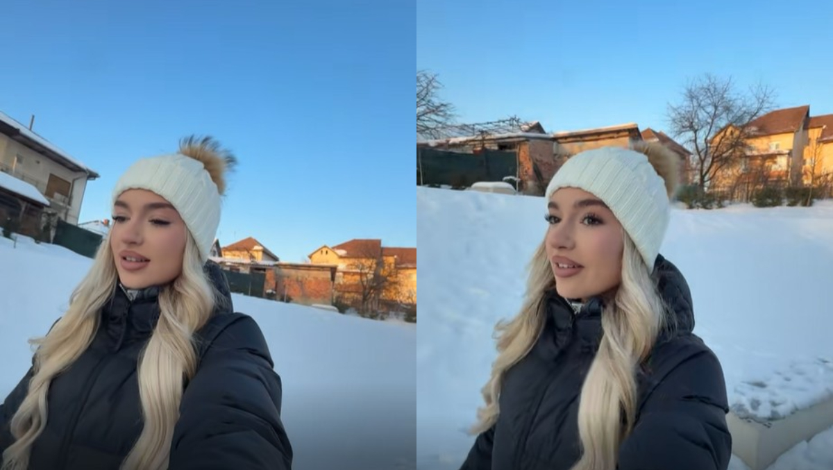 „Am venit la Alba până mâine, ca să îmi iau din lucrurile de acasă și vreau să vă arăt ce frumos e aici. Cam așa e la mine acasă. Fulgi, zăpadă și gheață, dar e frumos”, a