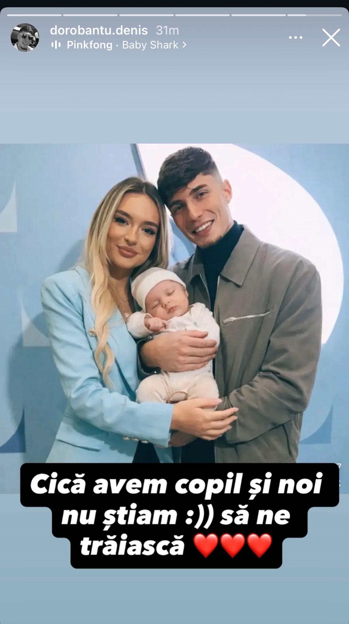 În postarea de pe story, ei au scris: „Cică avem copil și noi. Nu știam. Să ne trăiacă”.