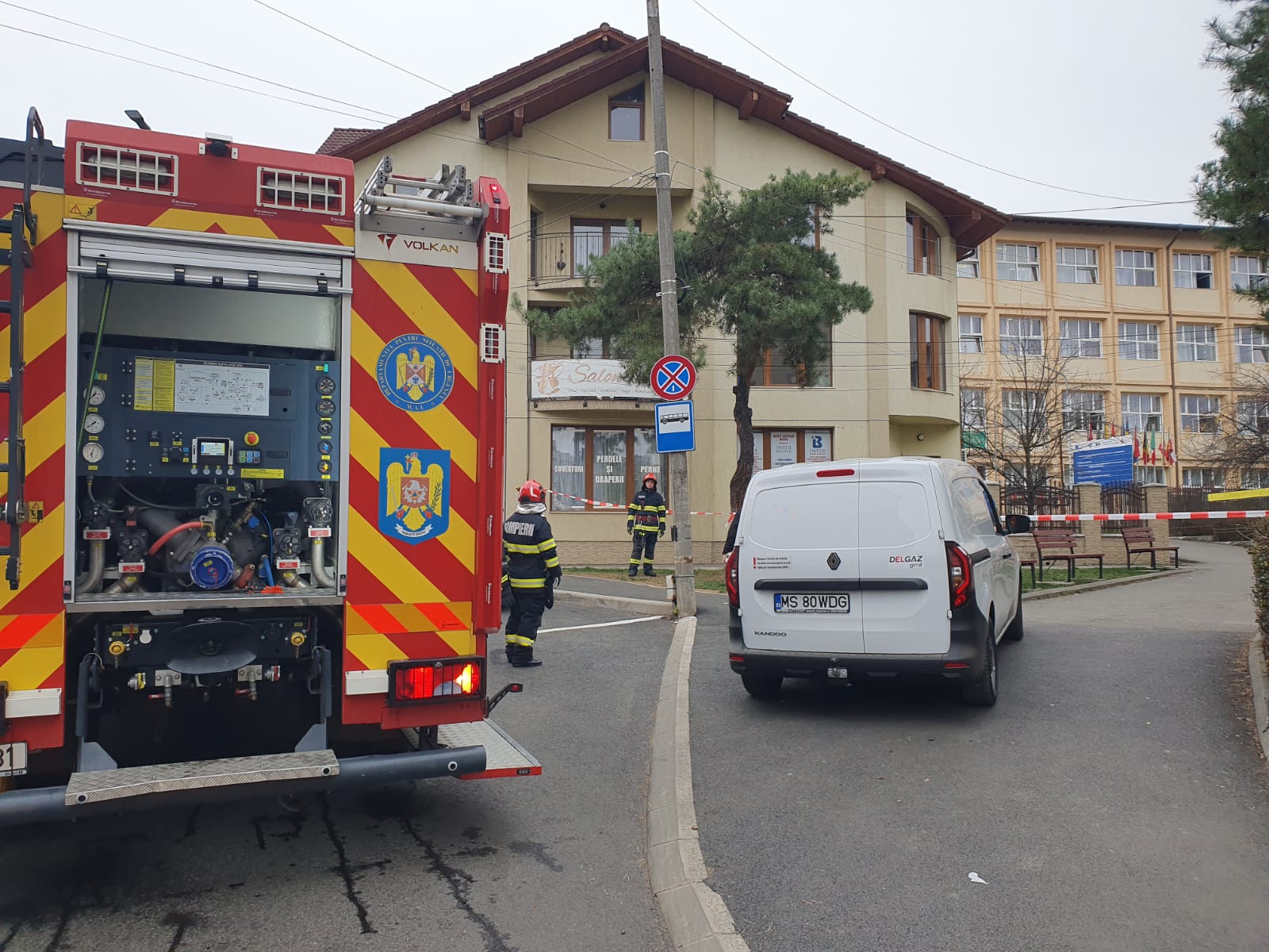 „La sosirea echipajelor operative, s-a constatat că, în camera tehnică, unde sunt amplasate două centrale termice pe gaz natural, s-au declanşat detectoarele de gaz, fiind perceput miros specific.