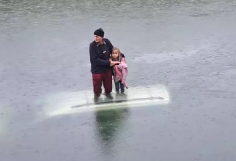 În ce stare se află bătrânul și fetița care au rămas blocați pe plafonul mașinii