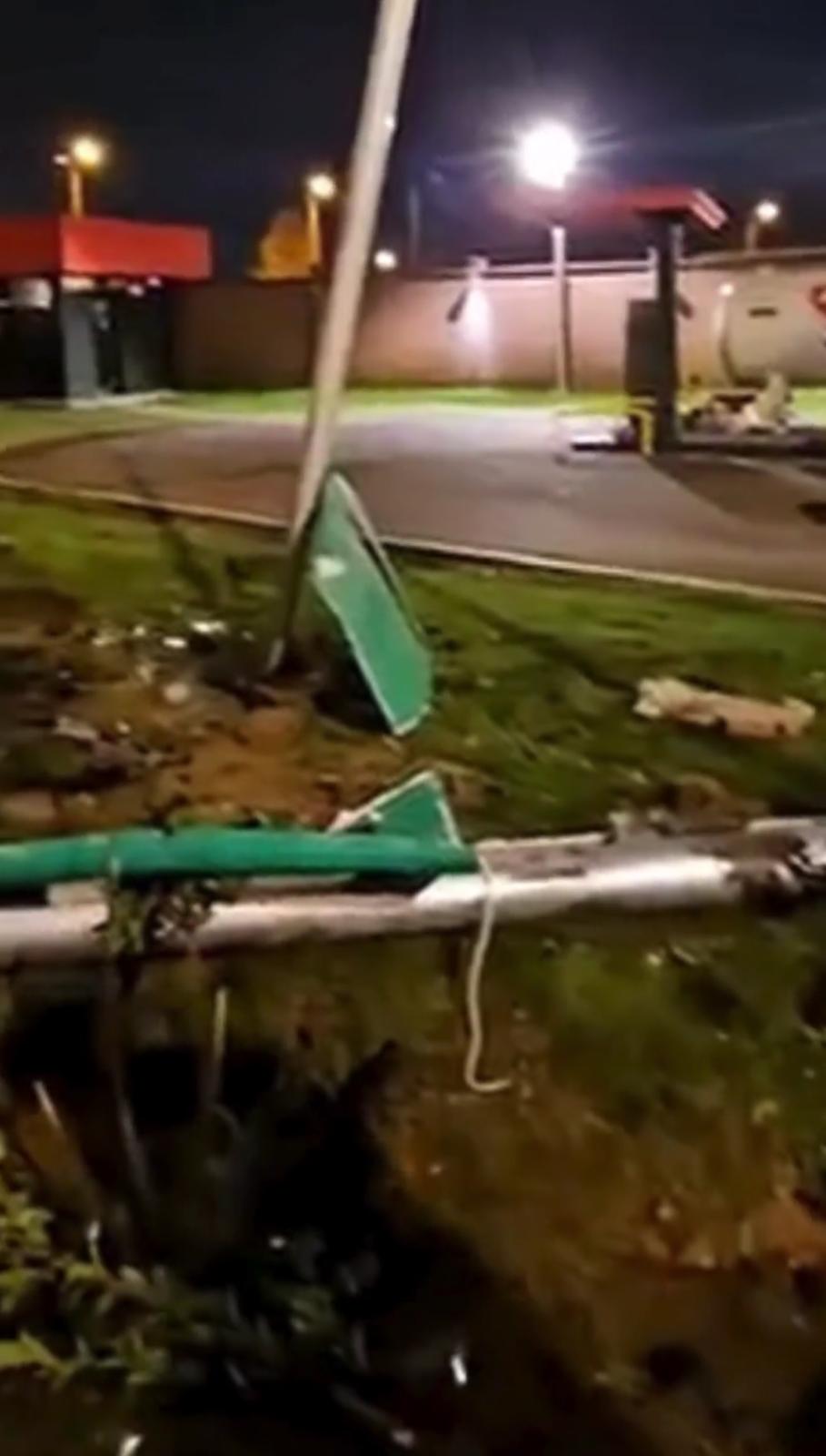 După aterizare, autoturismul a fost aruncat în perimetrul unei stații de alimentare, unde s-a oprit în urma impactului. Conducătorul auto a rămas blocat în habitaclu, fiind necesară intervenția echipajelor de urgență pentru a-l elibera.